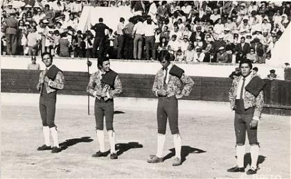 Kicas Mascarenhas, Xuta Mascarenhas, Peu Torres e Gonçalo Sepúlveda nas cortesias da já tradicional corrida do 15 de Agosto, nas Caldas da Rainha em 1972